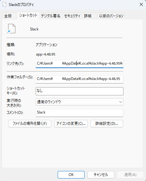 C:\Users\<ユーザー名>\AppData\Local\slack\app-4.48.95\slack.exe